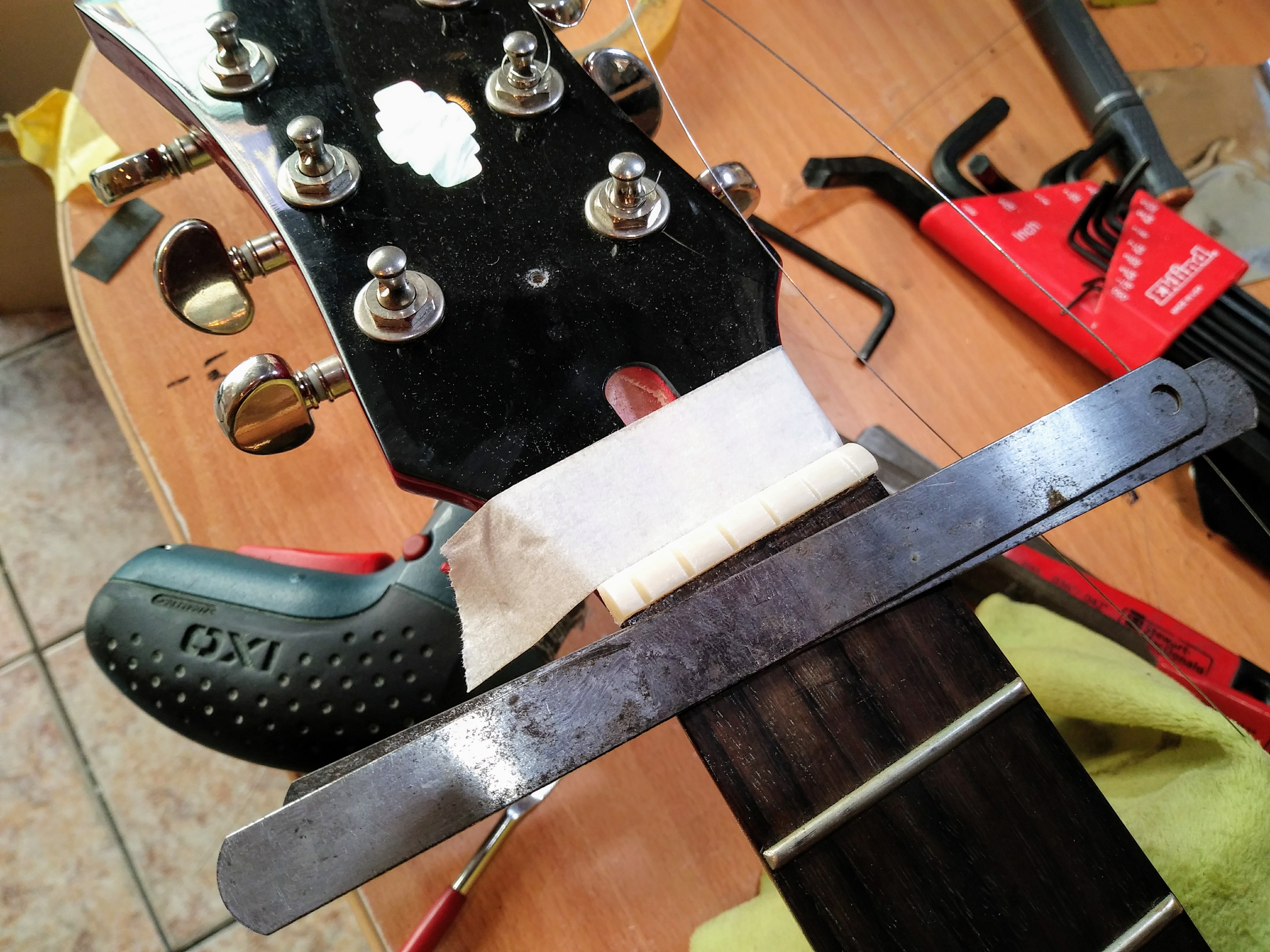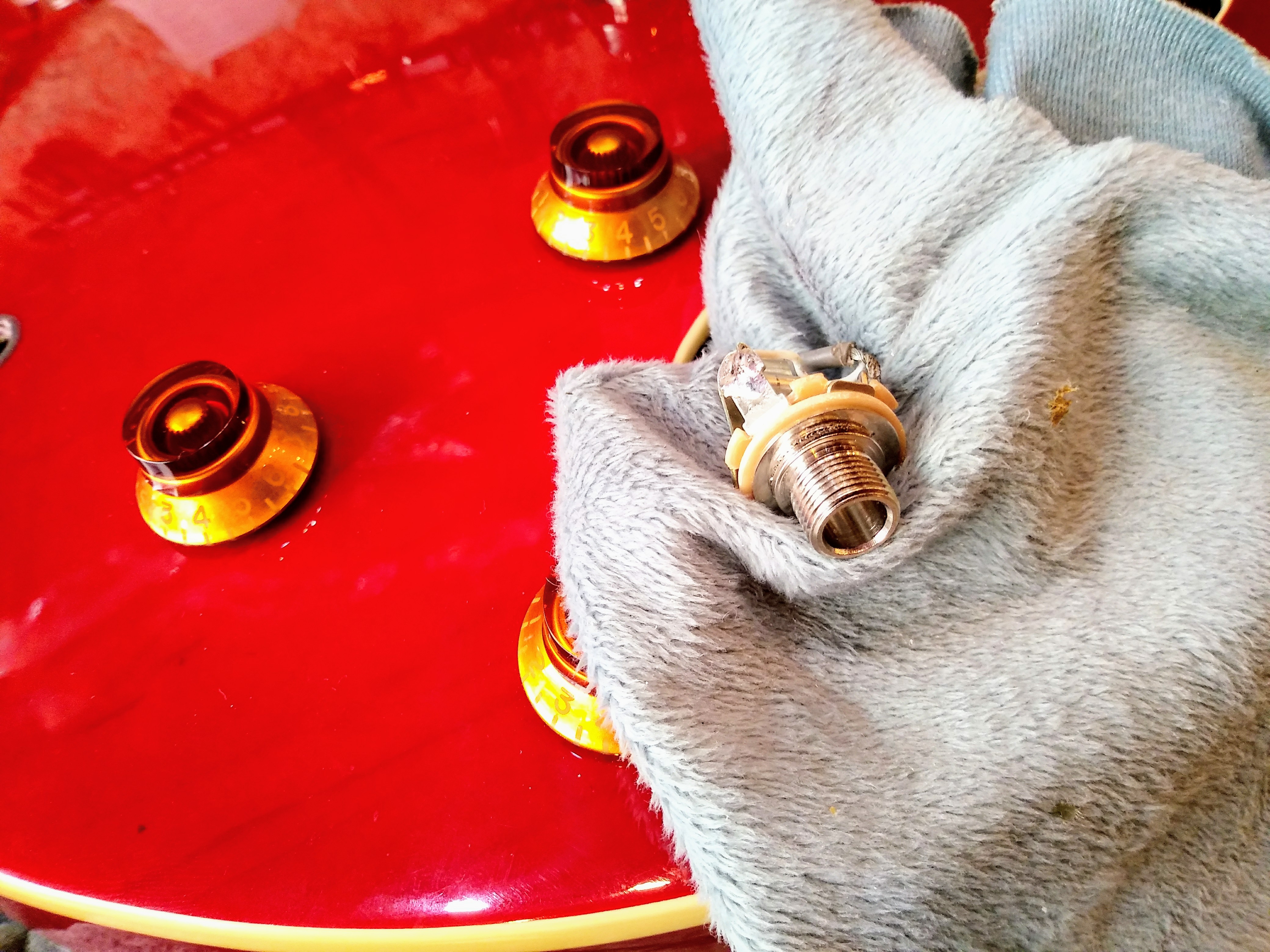 에피폰 할로우 바디 DOT 아웃풋 잭과 너트를 교체 작업 했습니다.