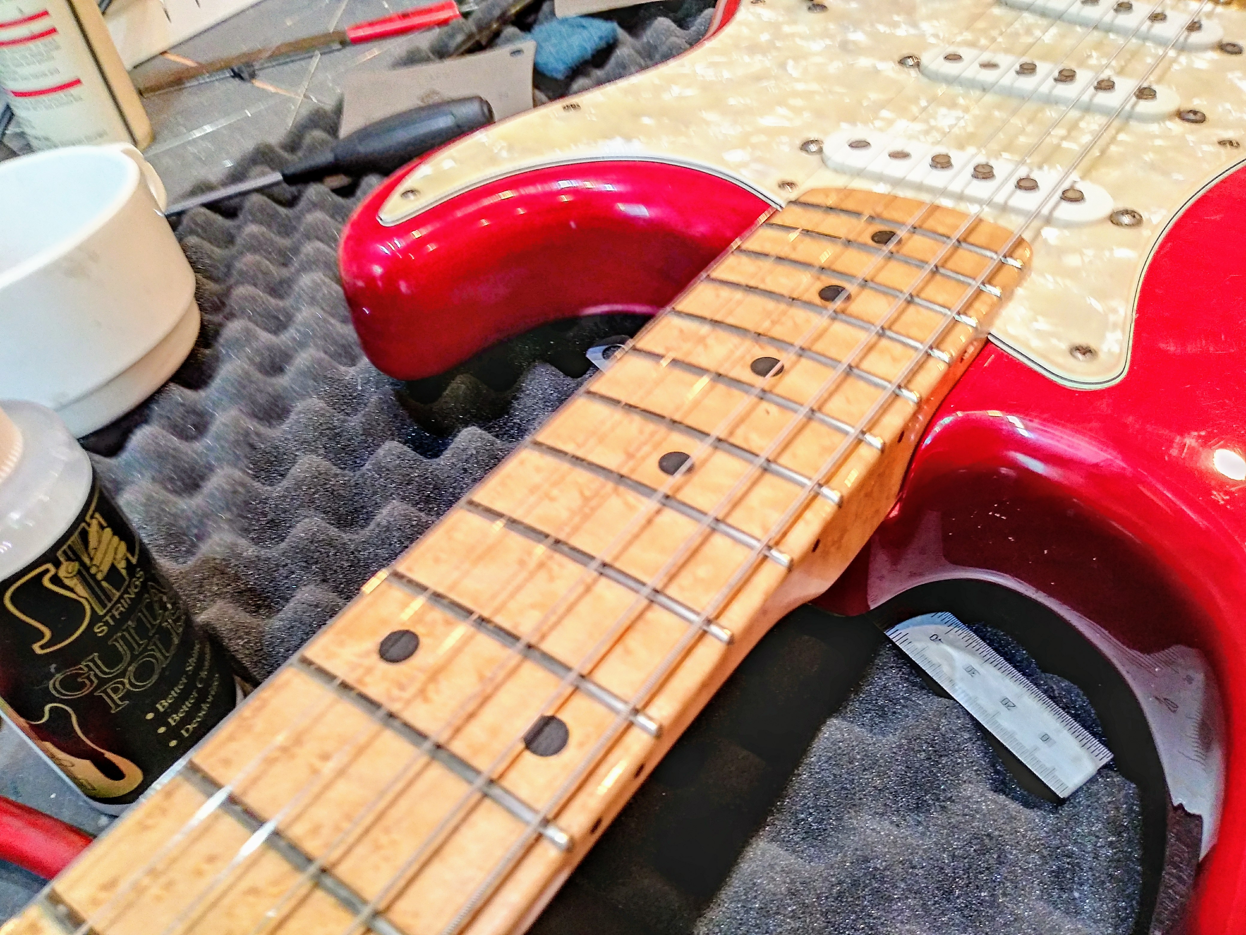 펜더(Fender) 스트라토캐스터 메이플 지판 리프렛 및 너트 교체를 했습니다.