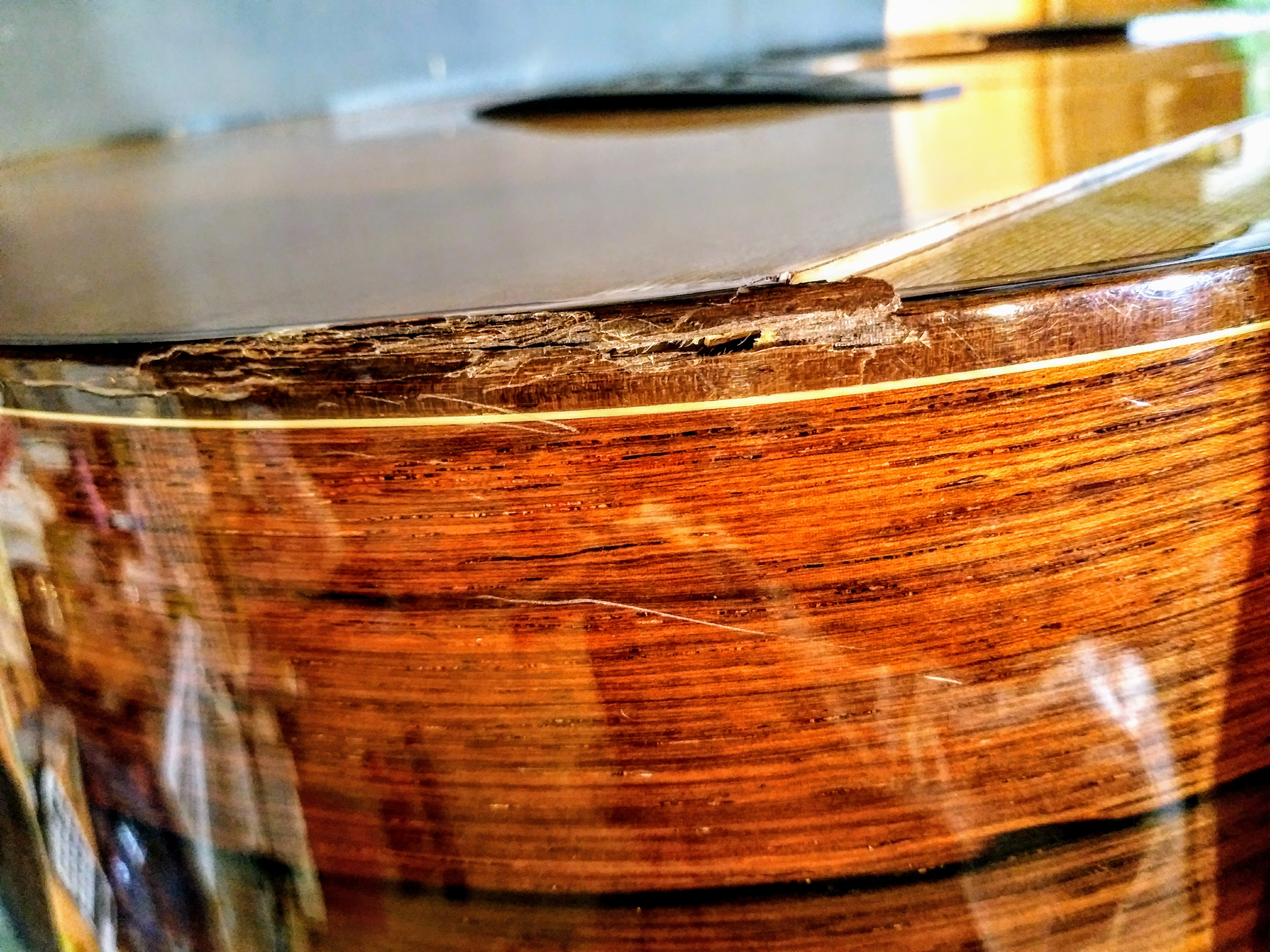통기타 상판과 측판이 파손 되어서 수리 작업 했습니다.