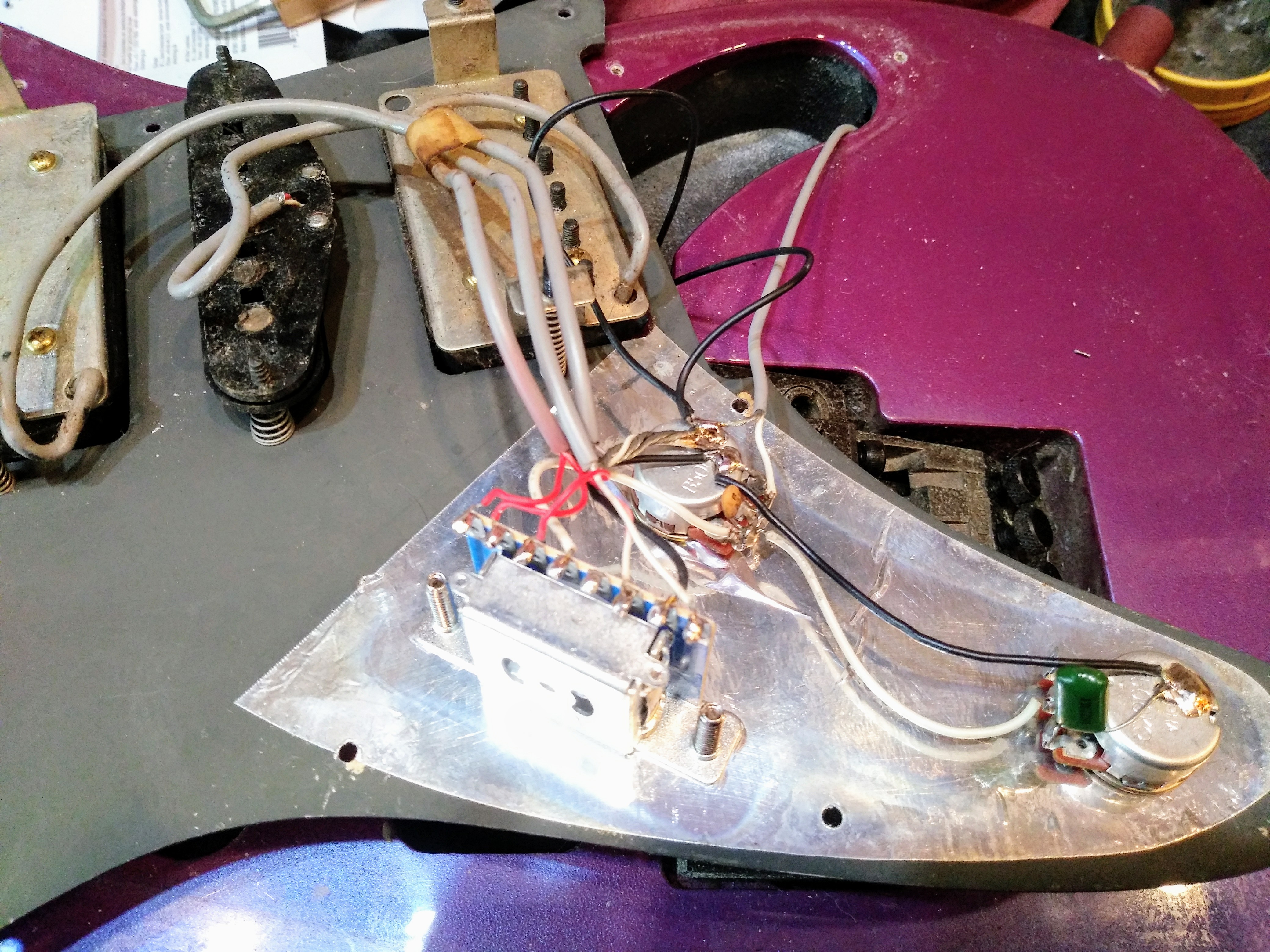 볼륨과 톤 조절시 노이즈가 생기고, 픽업 셀렉터가 접점이 부식이 되어서 교체 작업을 했습니다.