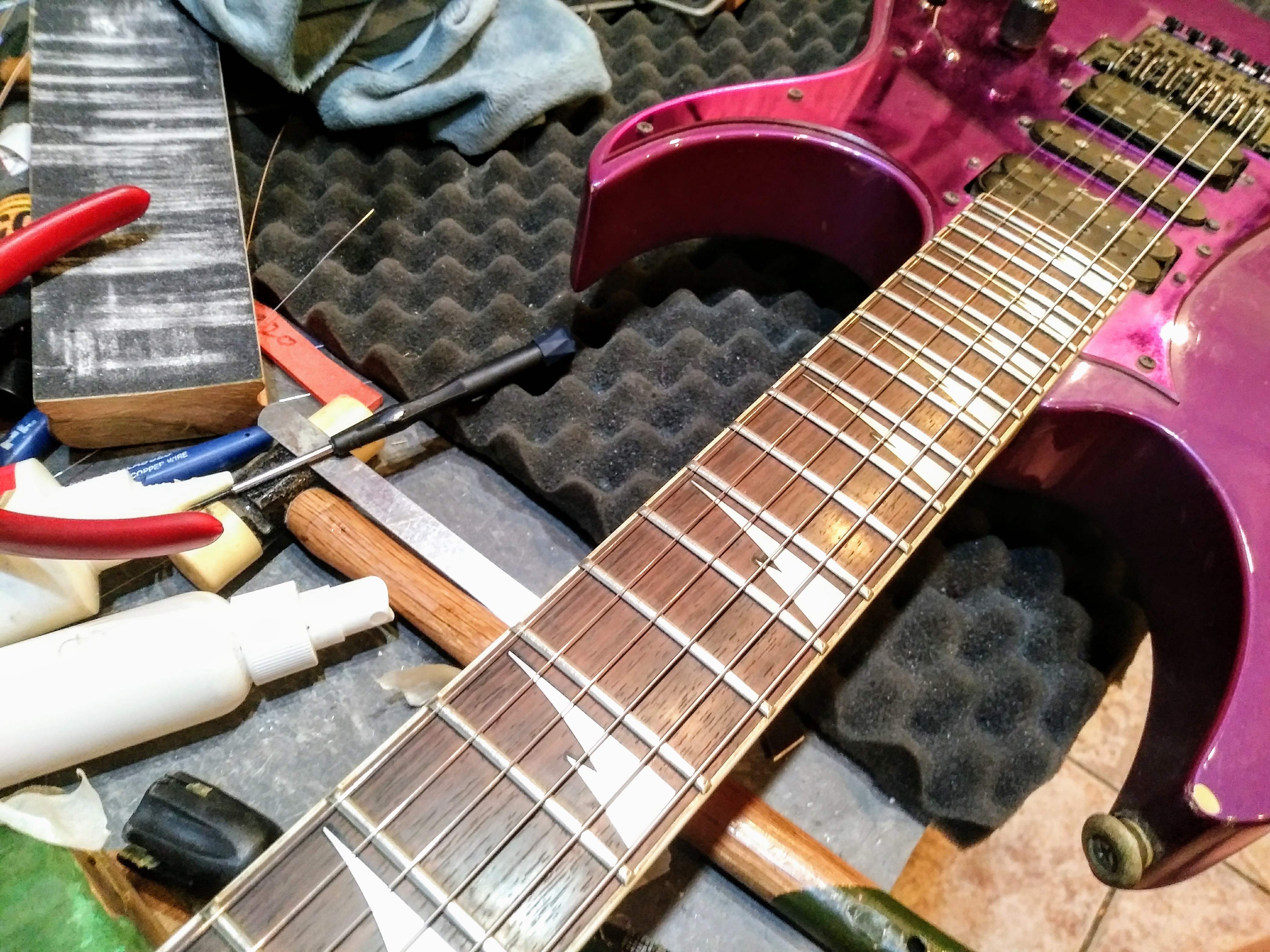 프렛 청소를 하고, 광택 작업