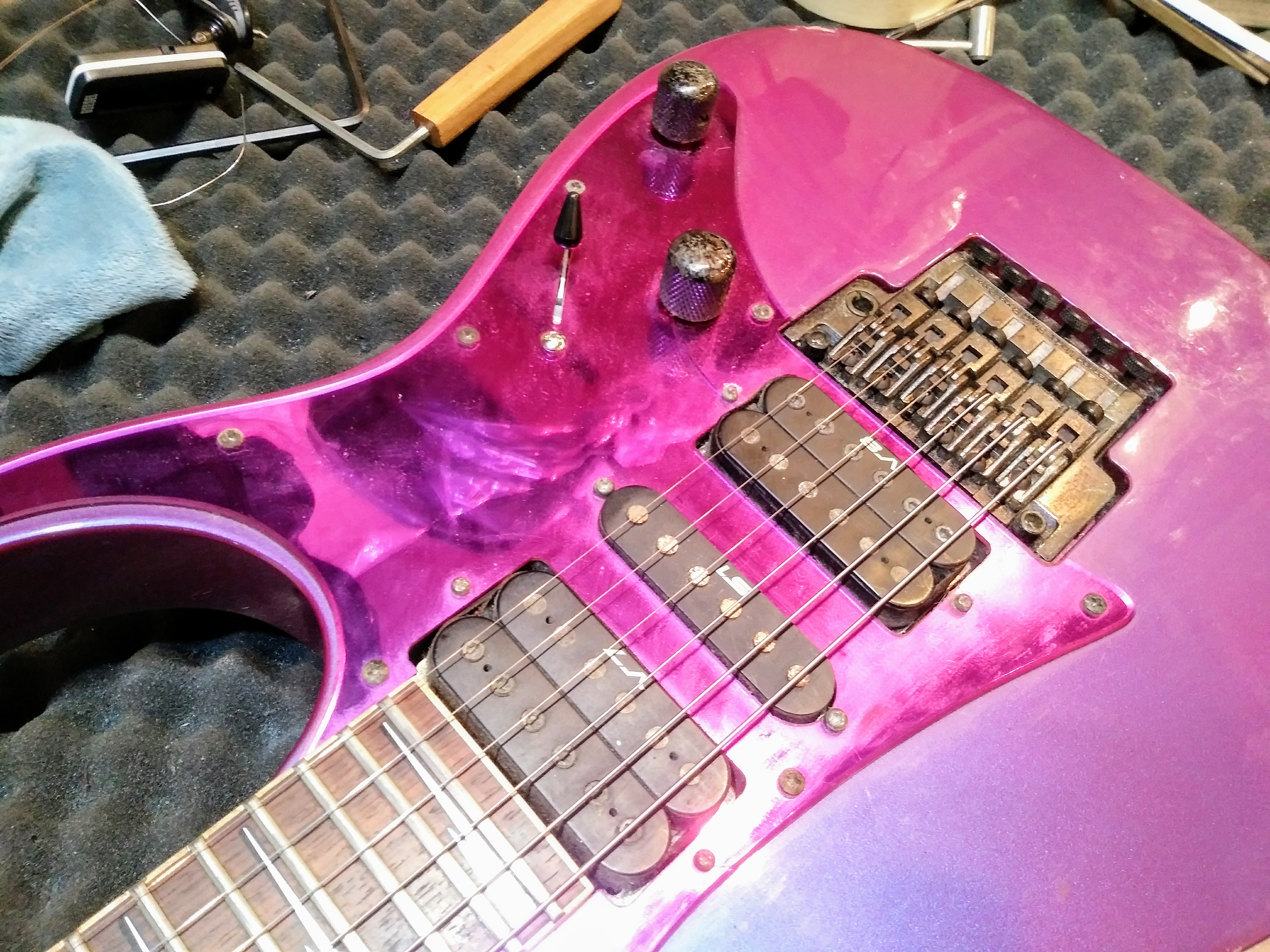 오랫동안 사용 안한 일렉기타를 세팅 및 볼륨, 톤, 셀렉터 부품 교체 작업을 했습니다.