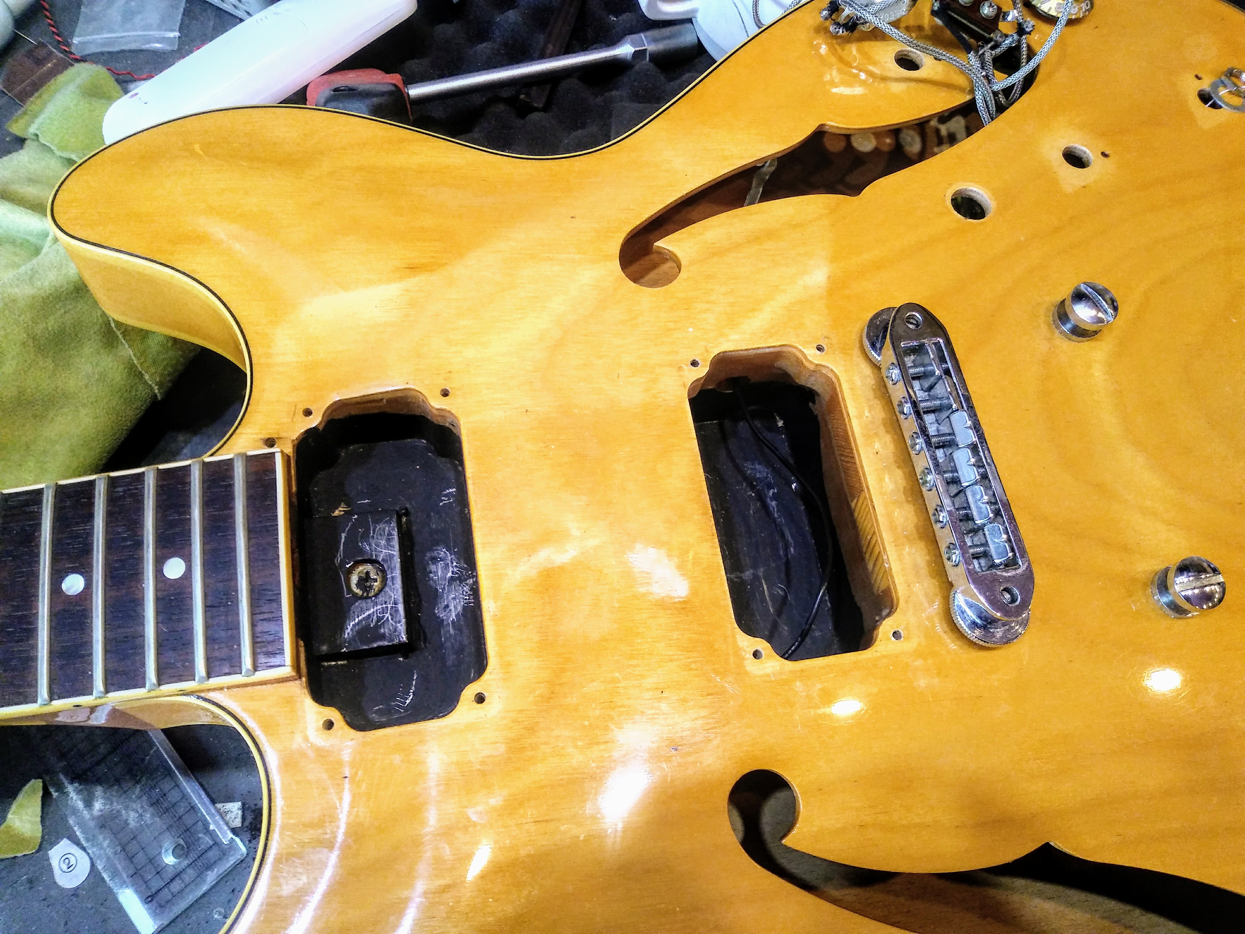 할로우 바디 일렉 기타 픽업 교체 작업을 했습니다.