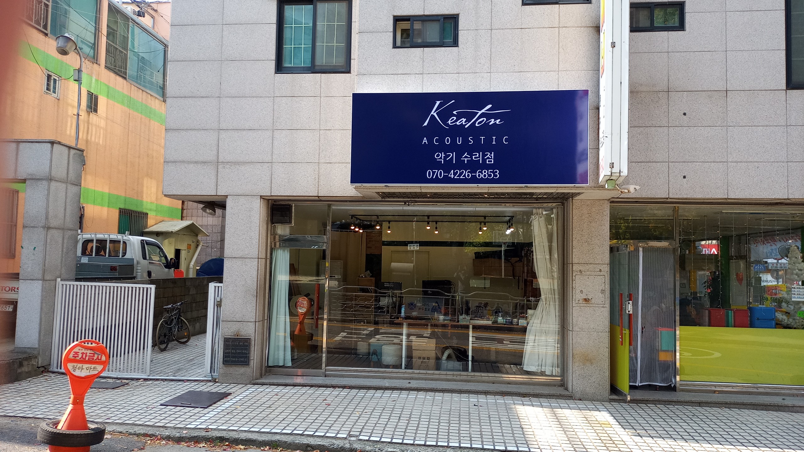 파란색 간판이 키튼 기타 매장 입니다.