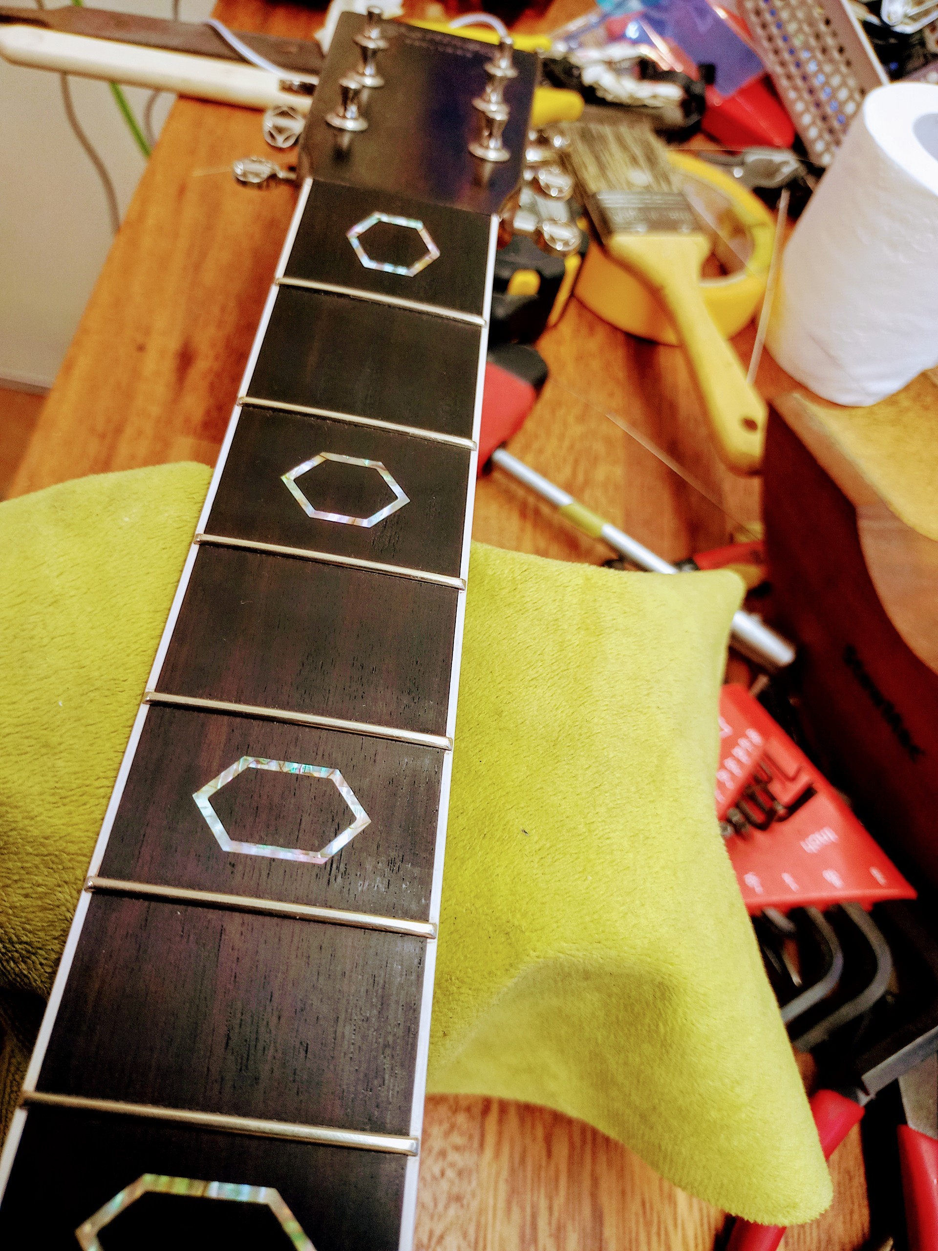 1프렛 부터 14프렛 까지 리프렛 작업을 했습니다.