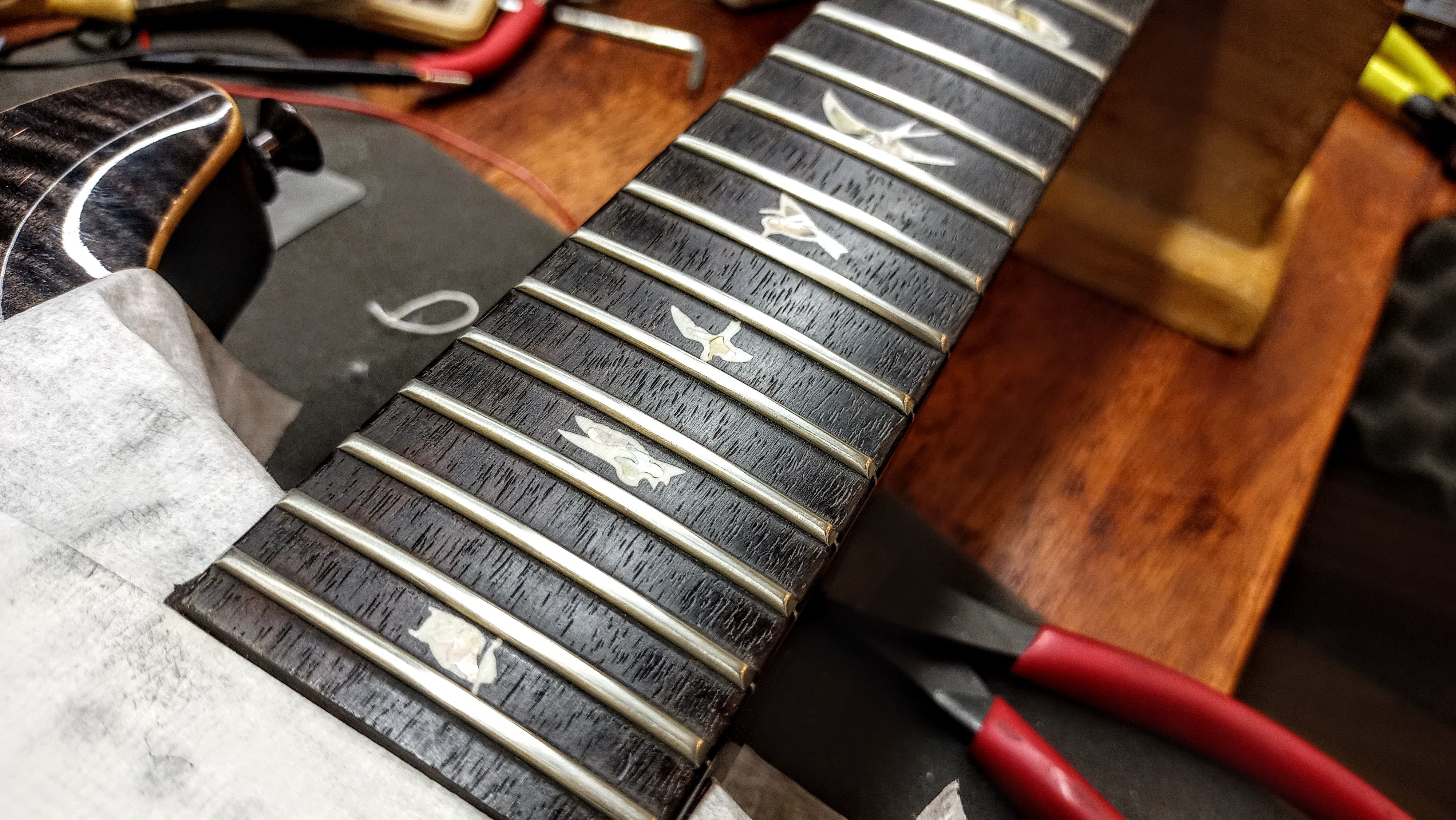 일렉기타 PRS 프렛을 드레싱 작업을 했습니다.