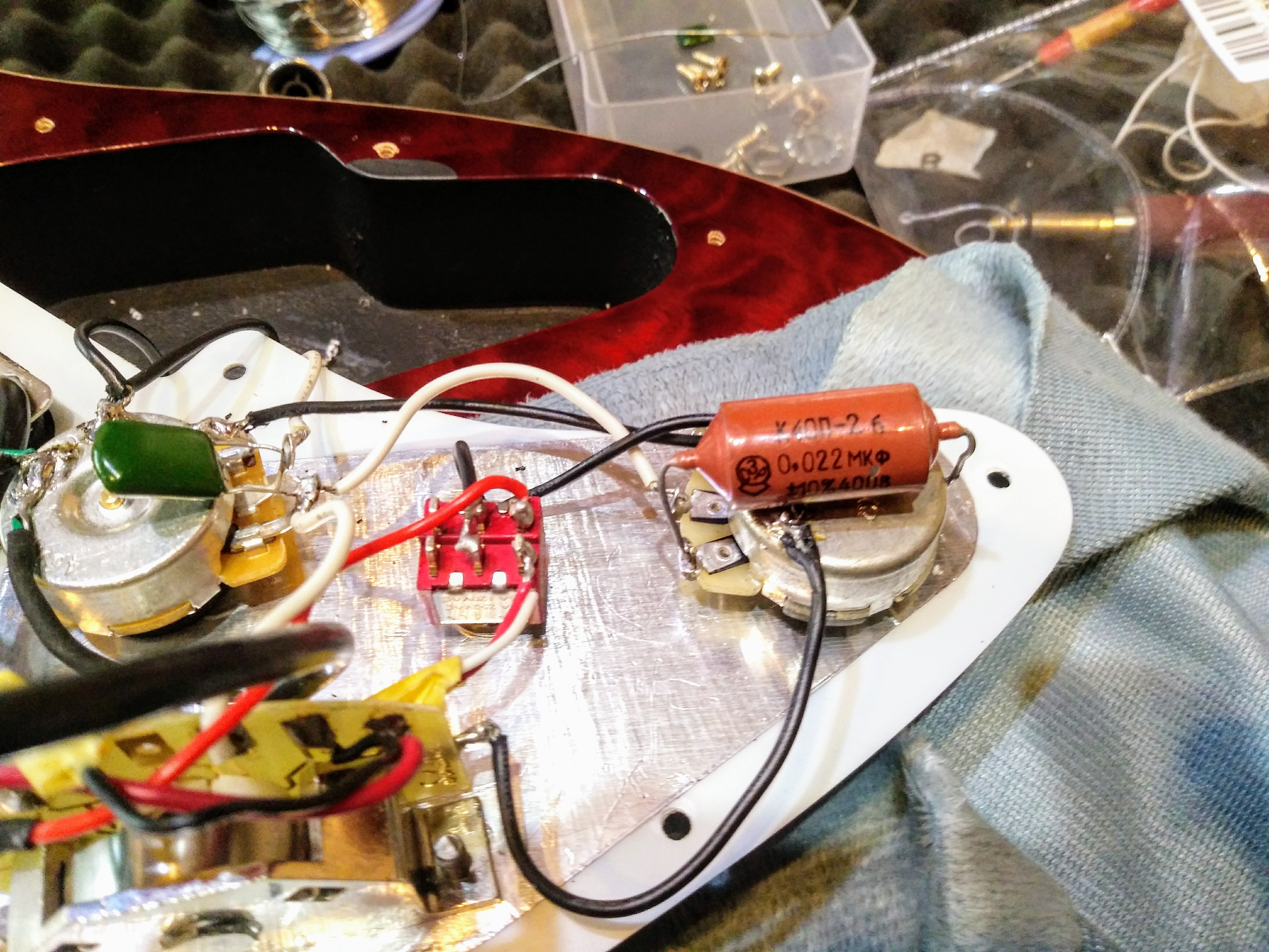 일렉기타 기타 톤 캐페시터 교체 고객님이 일렉기타 톤이 마음에 들지 않아서 톤 캐패시터를 교체 작업 했습니다. 기존 캐페시터는 입니다. 교체한 캐페시터는 러시안 밀리터리 오일 캐페시터 입니다. 교체 작업 끝. 천안 어쿠스티 기타, 키튼 기타. Keaton, Russian Military Oil Cap Repair Service/리페어 자료실 2020.06.24